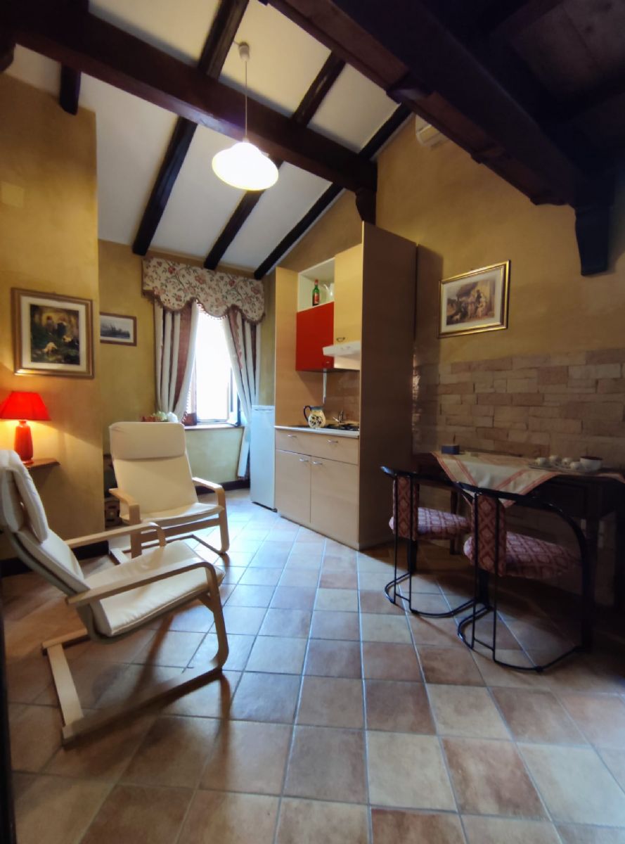 Camera da letto: un letto matrimoniale e un suggestivo soppalco in legno ospita un letto singolo, perfetto per i bambini o un ospite aggiuntivo.